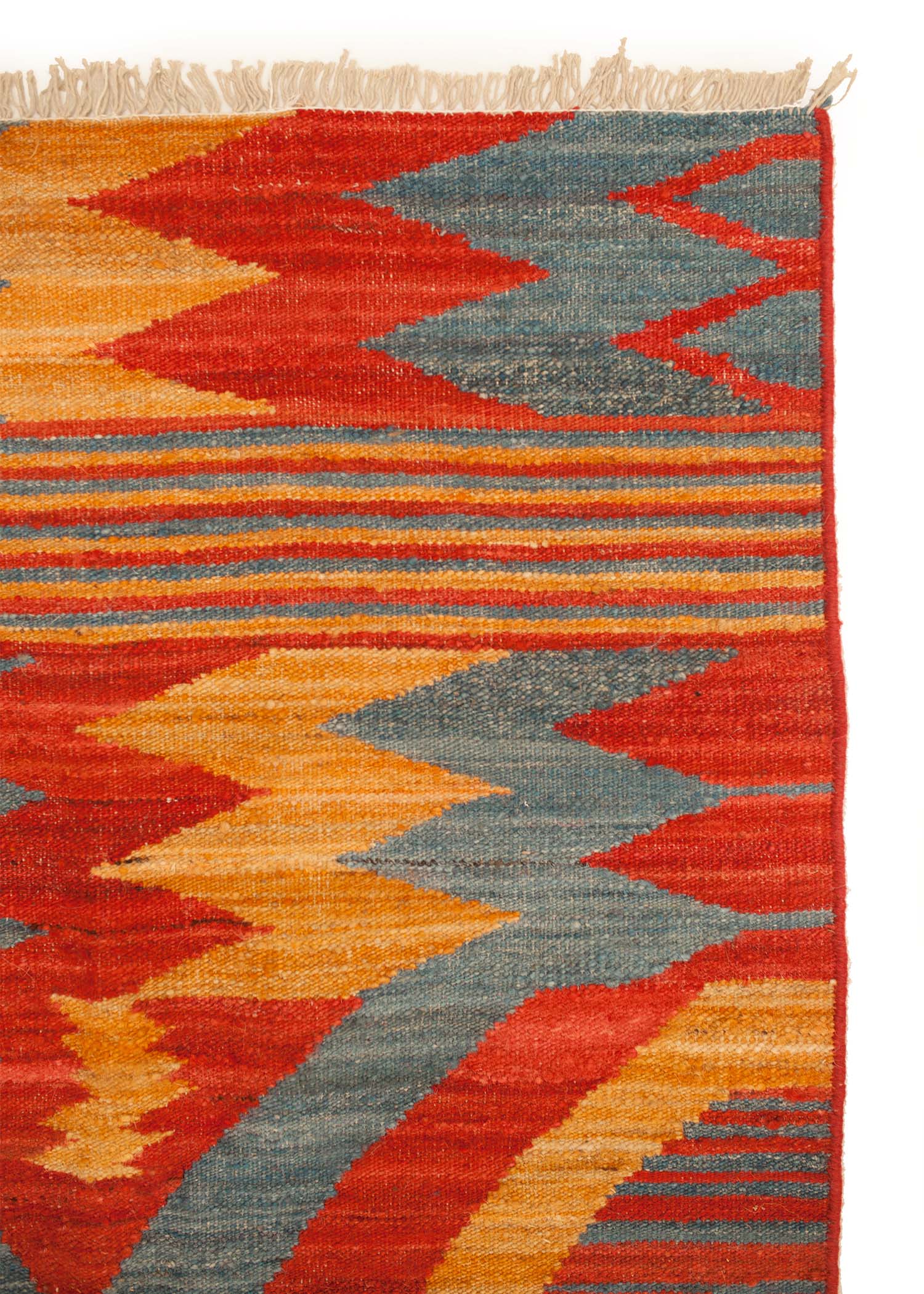 It was woven by the skilled fingers of a woman in northern Afghanistan. A kilim in natural colors looks great on a wooden and concrete floor. The advantage is the same back and front and easy care.
