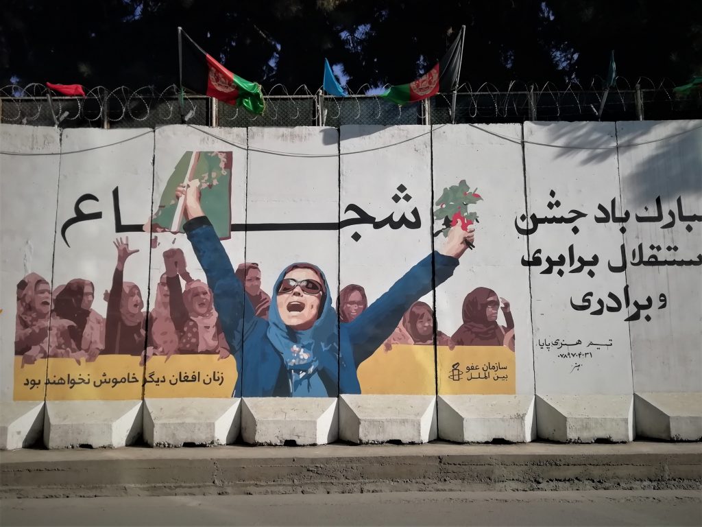Překvapeně hledím na výjevy spokojené rodiny. Za rohem na mě z několika „T-walls“ bojovně shlíží žena. Nápis vložený do jejích úst hlásá: „Odvaha! Afghánské ženy nebudou mlčet!” Mezi svými známými pátrám po původu těchto muralů. Dovídám se o skupině afghánských umělců a aktivistů ArtLords, kteří od roku 2015 umisťují na kábulské bloky originální street art a graffiti.