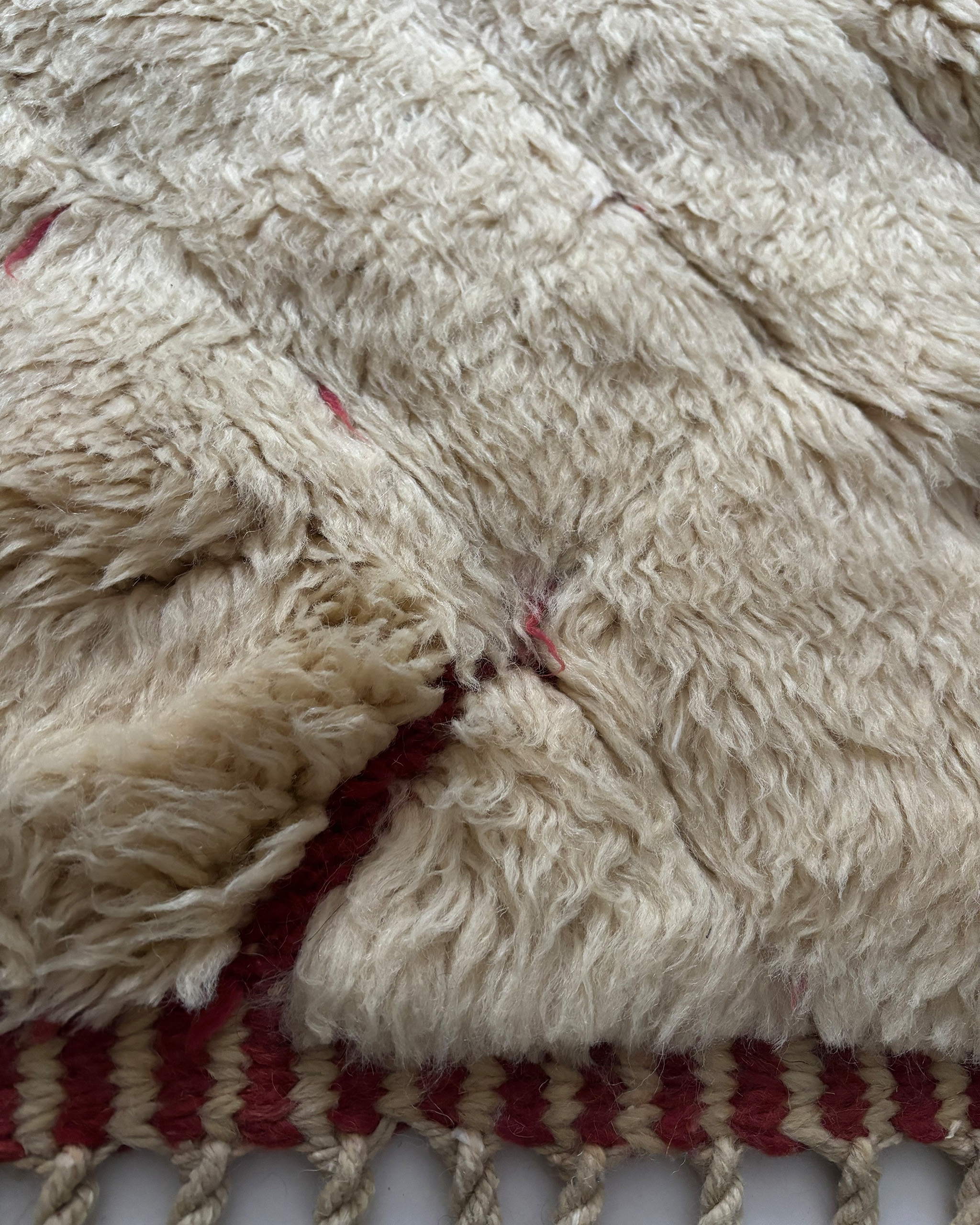 Tento koberec jsem pro vás osobně vybrala od zručných tkadlen z vesnic ve Vysokém Atlasu. Každý kus je zcela jedinečný, nese individuální sebevyjádření tkadleny i tkalcovské tradice kmenů Amazigh (Berberů) z pohoří Atlas.  Díky ručnímu zpracování můžete zaznamenat drobné nedokonalosti. Myslíme si, že to jen přidává na jejich charakteru a kouzlu.