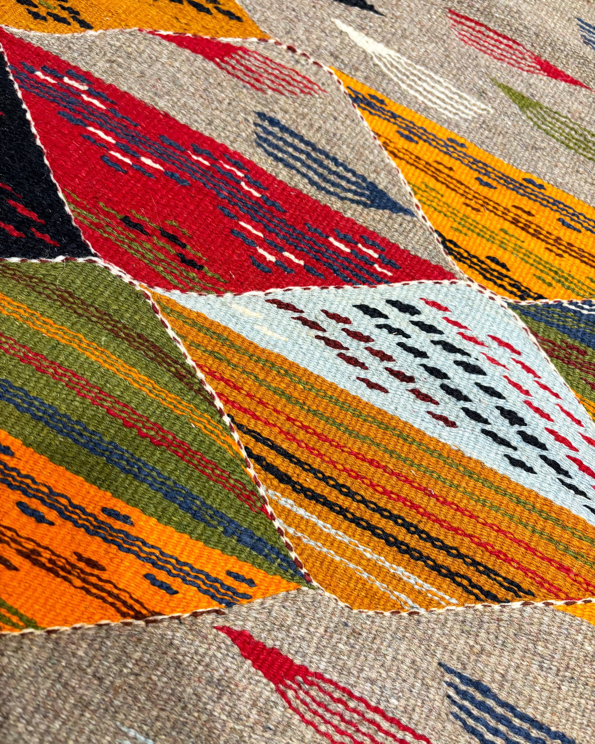100 % ovčí vlna, kombinace barviv, ručně tkaný