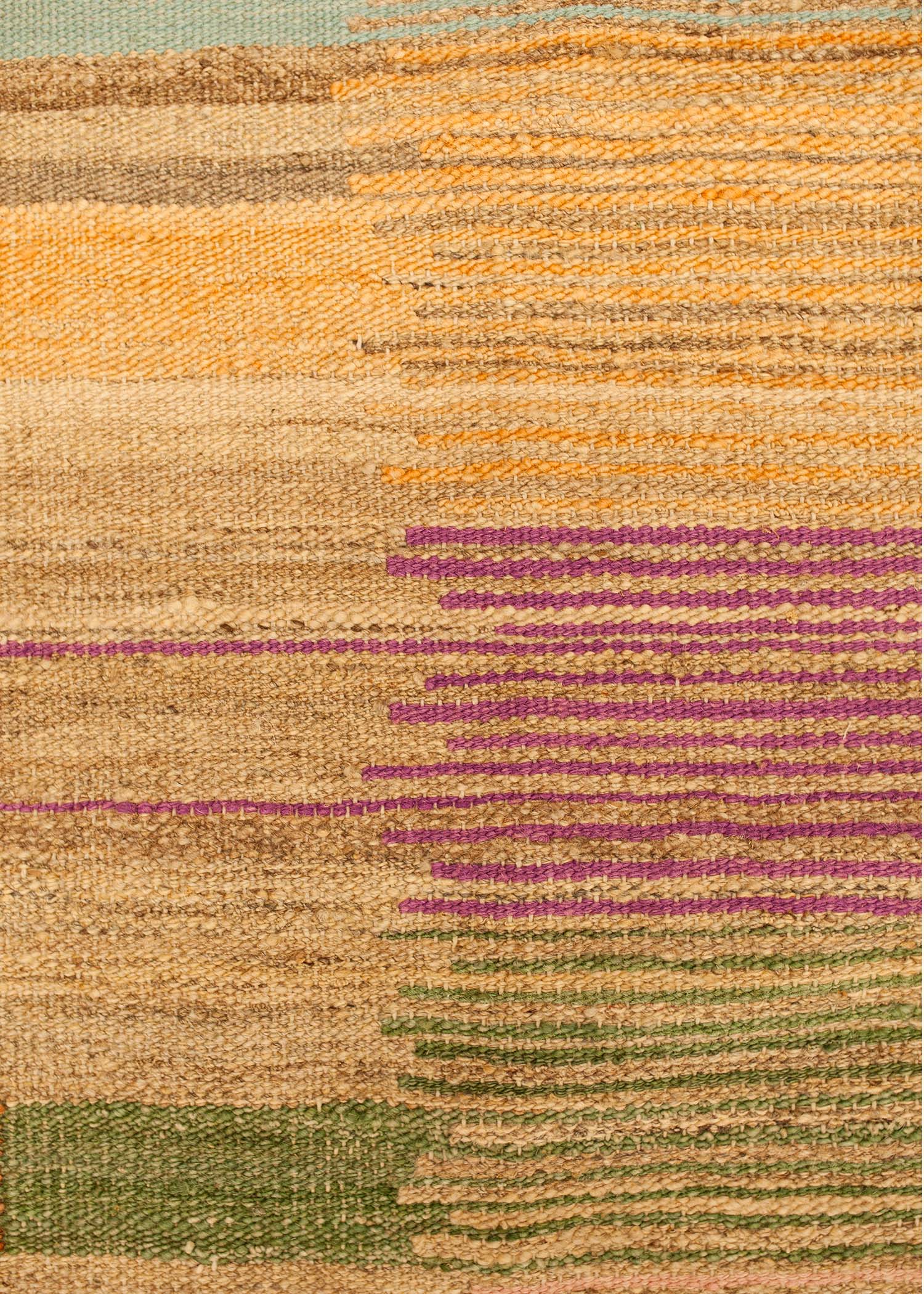 Hra jemných pastelových tónů na režném podkladu. Kilimu v barvách z přírodnin to moc sluší na dřevěné podlaze i betonové stěrce. Moc hezky si rozumí s dalšími přírodními materiály. Výhodou je stejný rub i líc a snadná péče. Utkaly jej zručné prsty ženy na severu Afghánistánu.