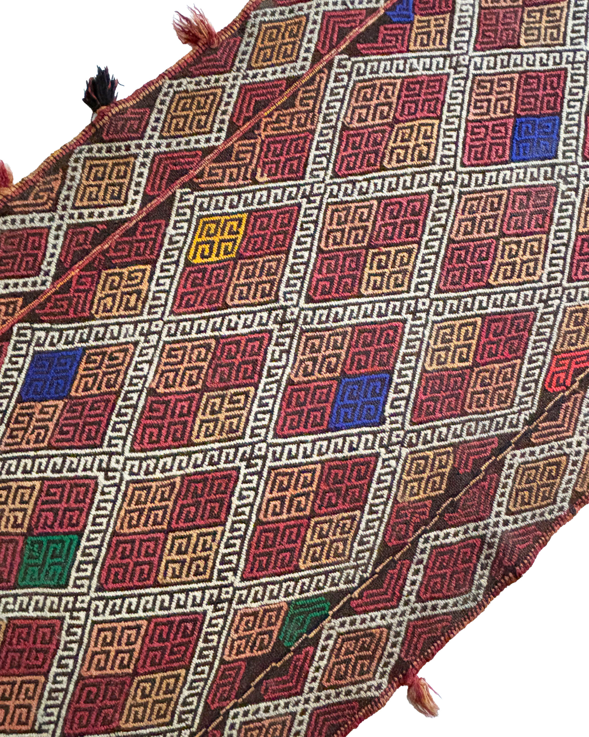 Turkmenský koberec Sarma zaujme tradičními vytkávanými vzory ve svěžích tónech a zemitou podkladovou paletou. Hravý detail představují třásničky a řetízek po stranách. Nadčasový kus se svojí délkou 247 centimetrů se skvěle hodí do chodby, k posteli či kuchyňské lince.