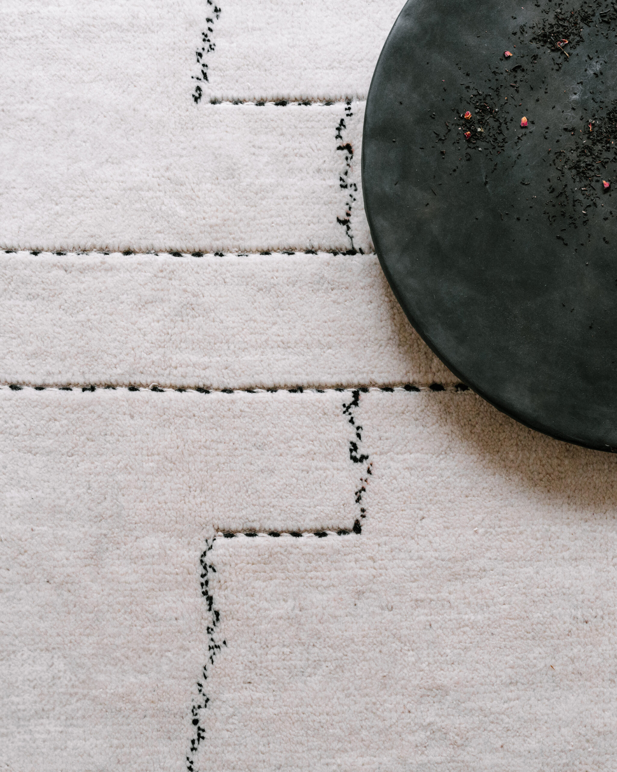 Nadčasový koberec zdobí centrální ornament tvořený kombinací tkaných řetízků a vázaných uzlů. Právě tyto detaily dodávají hravost jinak velmi elegantnímu kusu. Koberec vázaný v pevné vazbě a jednotícím světlém podkladu doplňují černé akcenty. Huňatá textura zaručí naprosté pohodlí a bohatý smyslový prožitek.